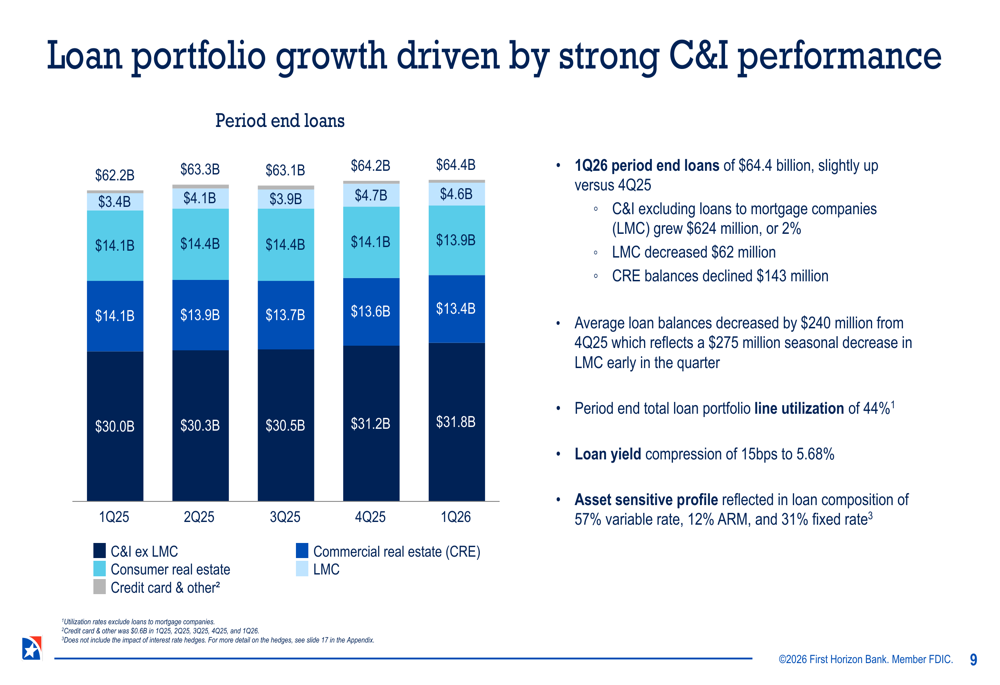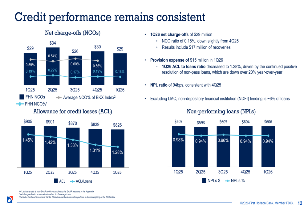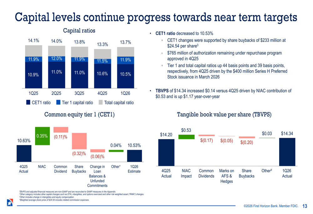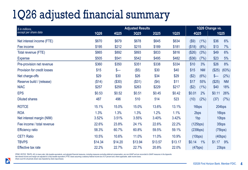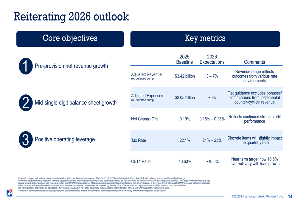 First Horizon reaffirmed its full-year 2026 guidance, projecting continued momentum across key financial metrics.